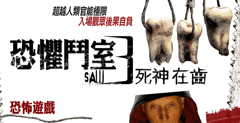 註:英文對白,中英文字幕。《恐懼鬥室3死神在齒》為三級影片只准年滿 18 歲成年人觀看。