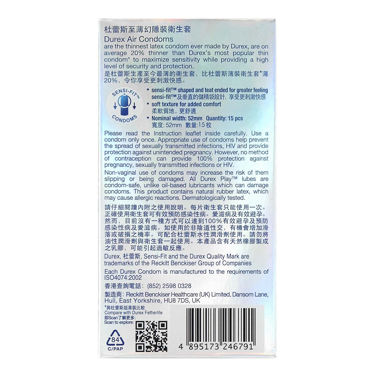 This is the thinnest latex condom ever made by Durex (June 2015), are on average 20% thinner than Durex's most popular thin condom (compare with Durex Fetherlite) to maximize sensitivity while providing a high level of security and protection.
